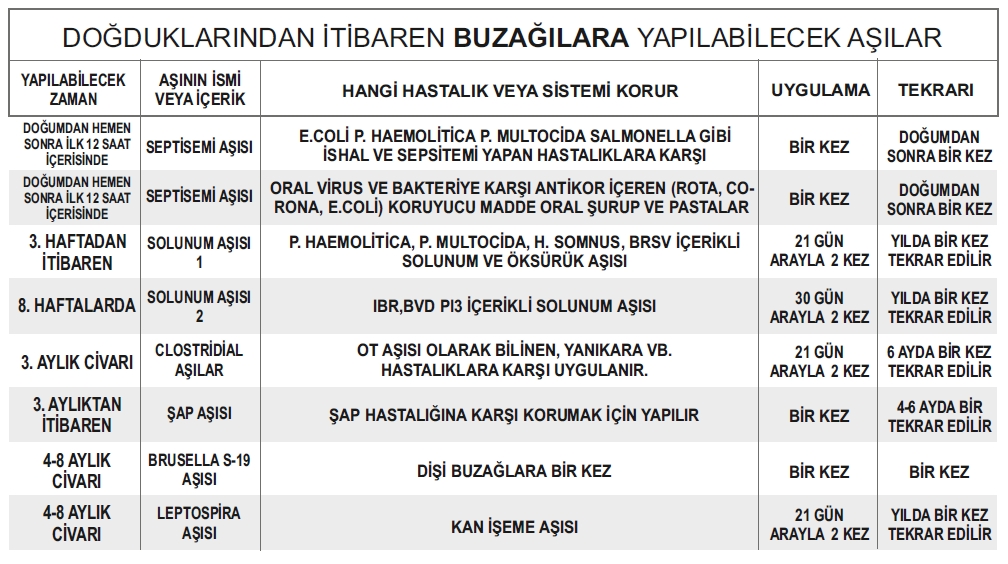 Buzağı, Düve ve İneklerde Aşılama
